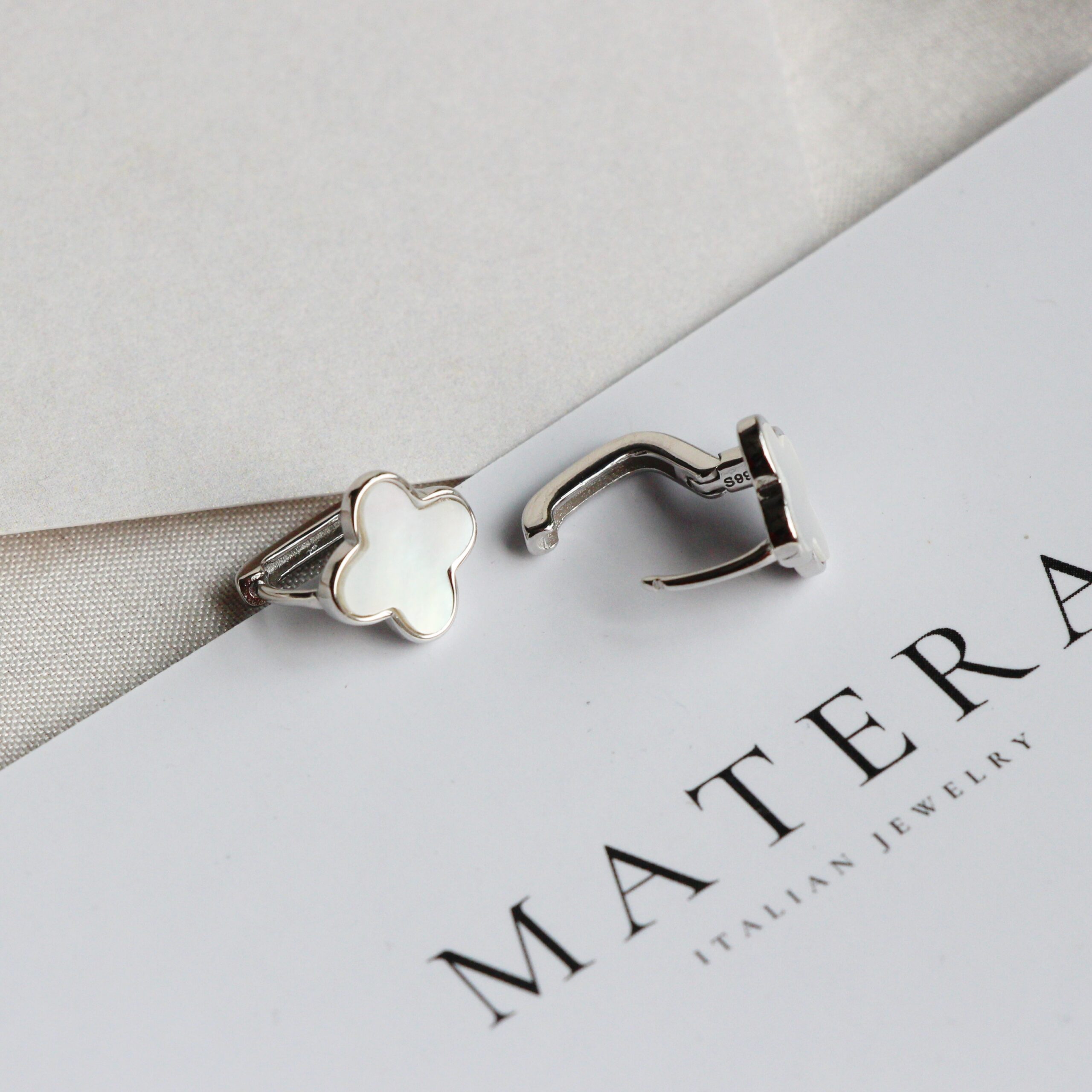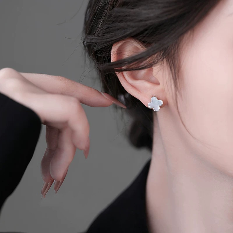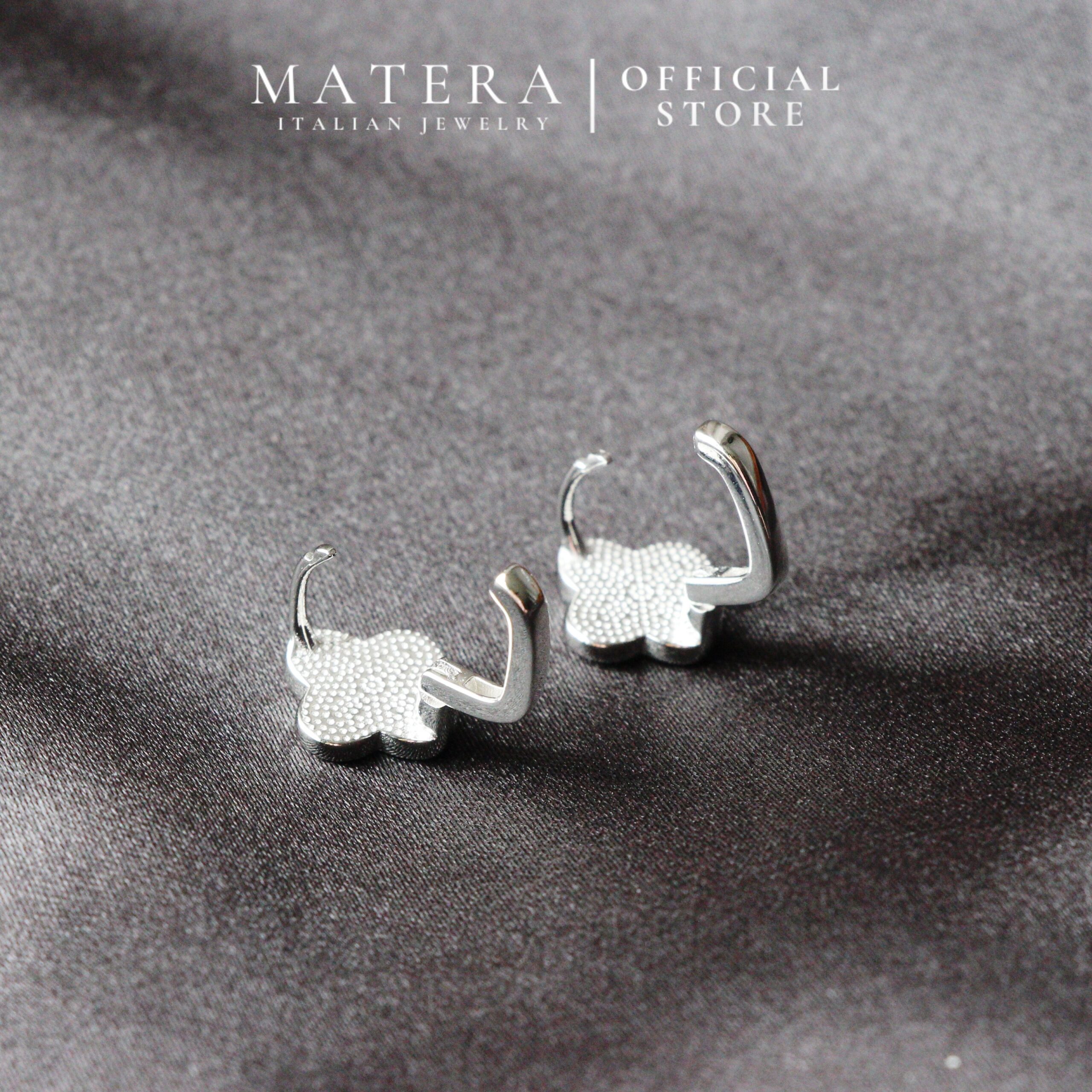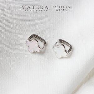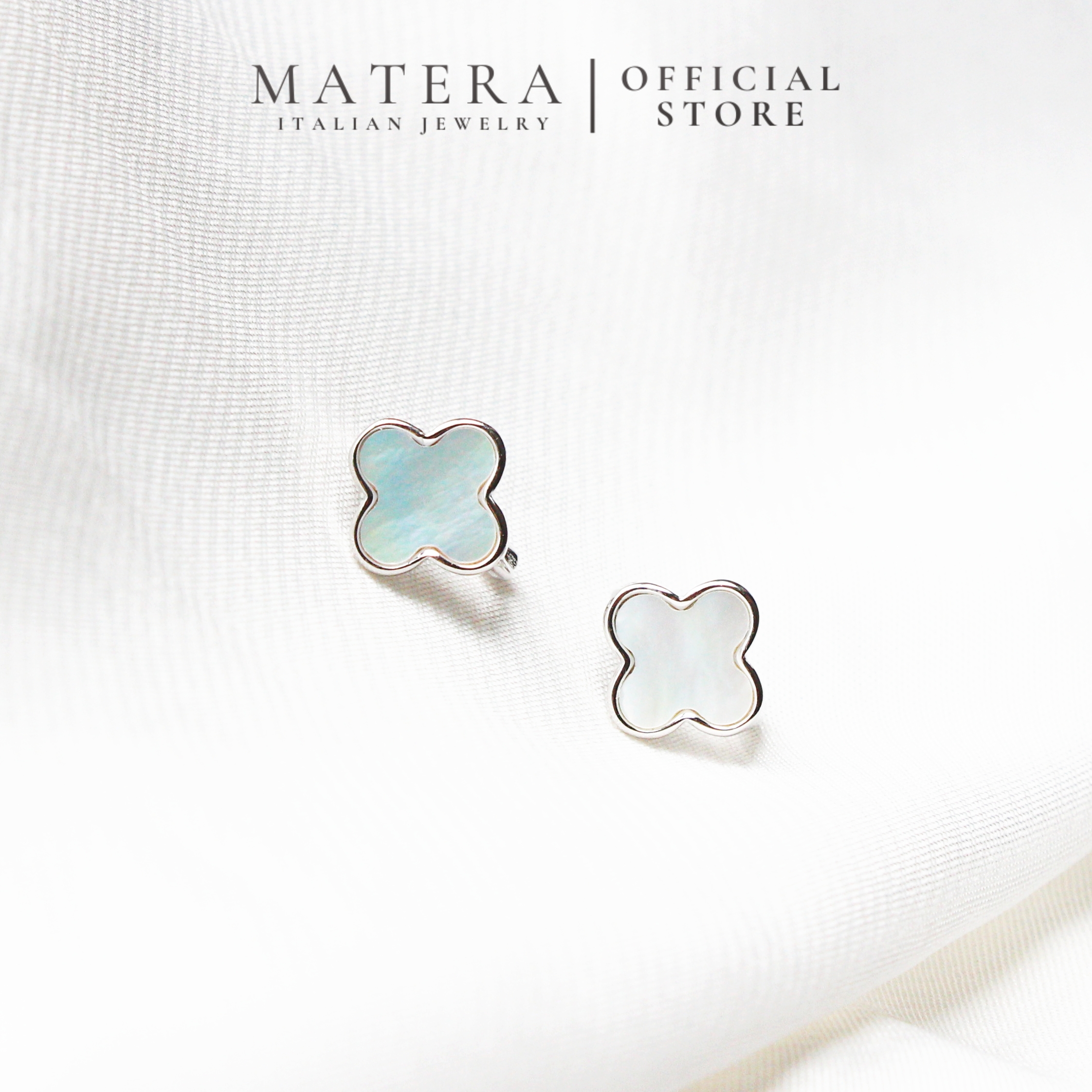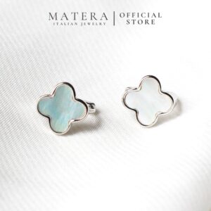 Bông tai bạc 𝐋𝐮𝐜𝐤𝐲 𝐅𝐥𝐨𝐫𝐚𝐥𝐬 MATERA S999 khuyên bạc cao cấp hoa 4 cánh khảm xà cừ tinh xảo MBT21
