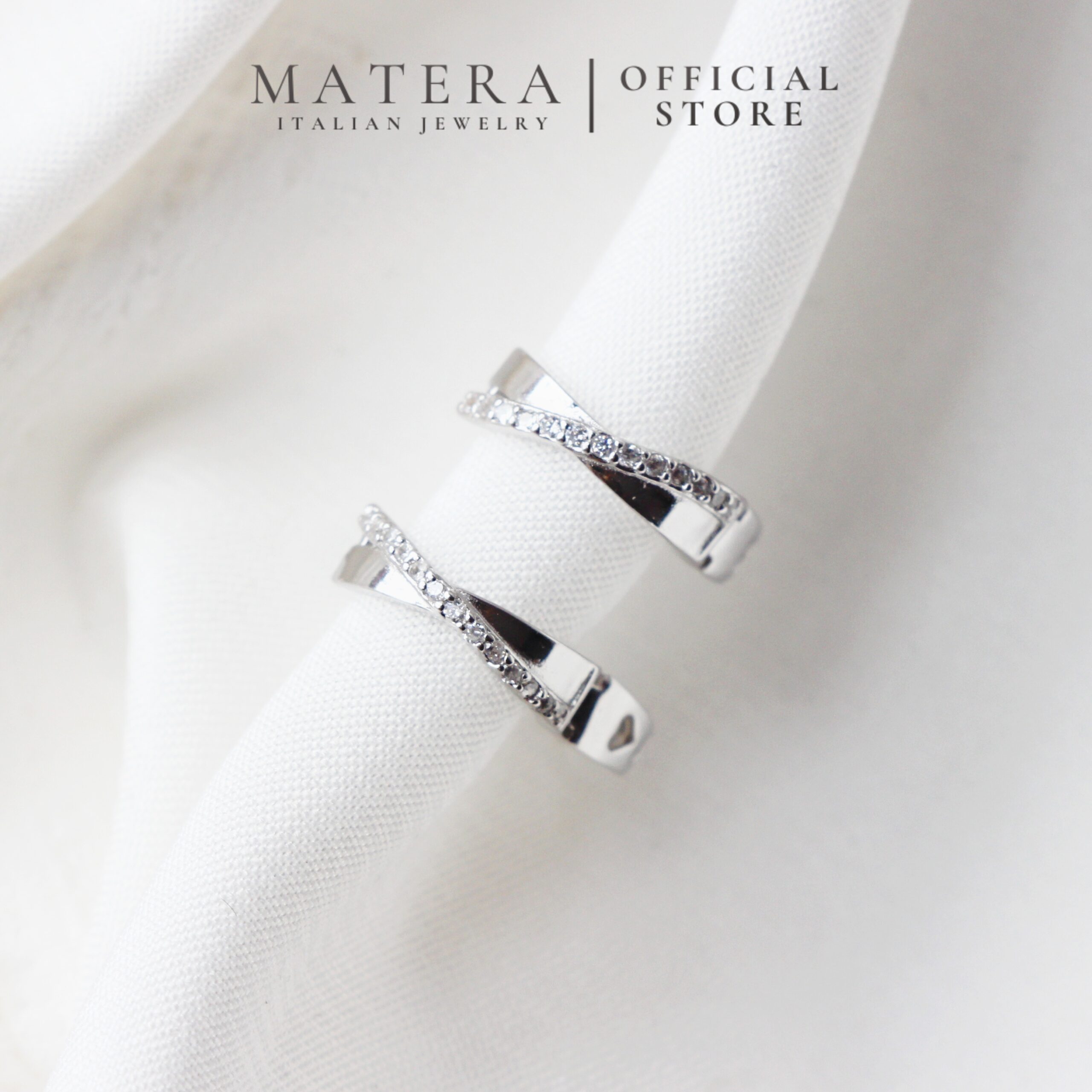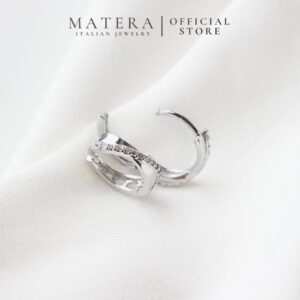 Bông tai bạc 𝐓𝐰𝐢𝐬𝐭𝐞𝐝 𝐆𝐥𝐨𝐰 MATERA S999 cao cấp khuyên bạc tròn đính đá thanh lịch MBT26