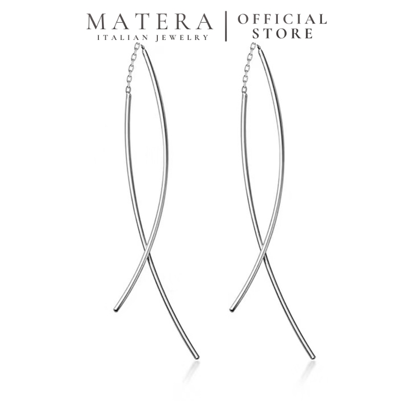 Bông tai bạc nữ sợi sóng đôi MATERA S925 chính hãng lắc tai bạc nữ tính thiết kế basic ngọt ngào thanh lịch MBT11