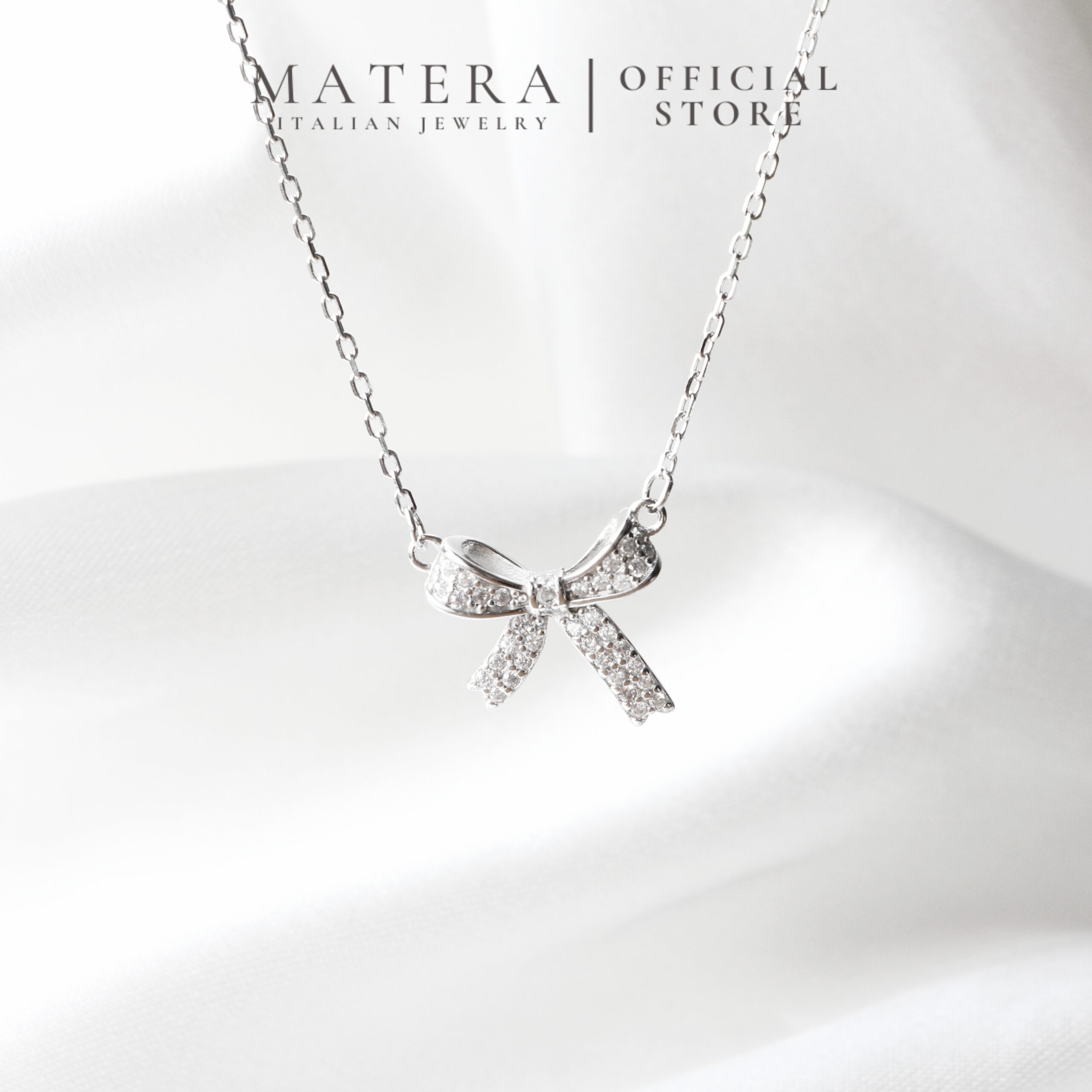 Dây chuyền bạc MATERA S925 chính hãng Crystal Bow nơ đính đá ngọt ngào quà tặng bạn gái MDC17