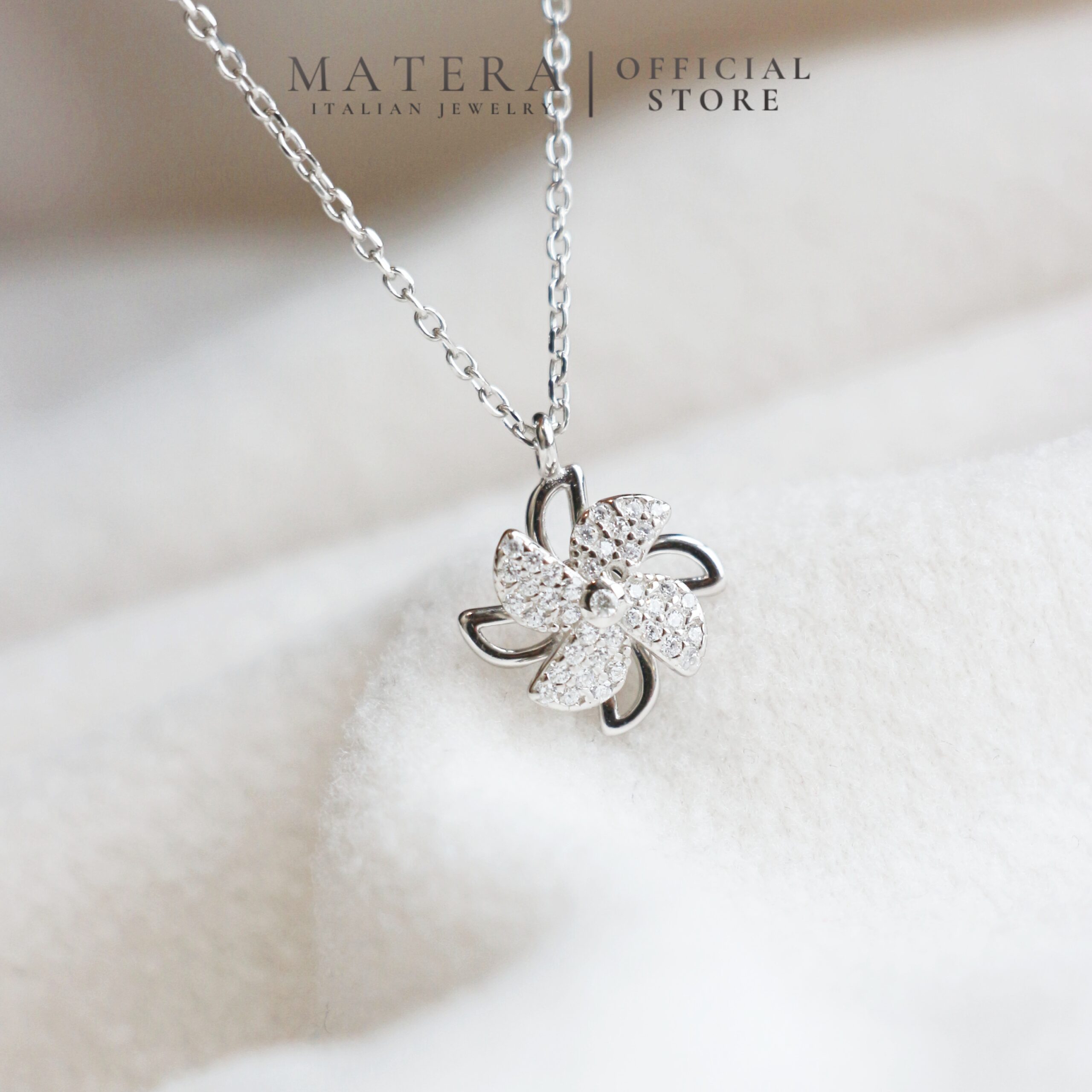 Dây chuyền bạc MATERA S925 Cối Xay Gió Đính Đá – Điểm nhấn trẻ trung, thanh lịch. Bạc Ý S925 sáng đẹp, an toàn cho làn da nàng.