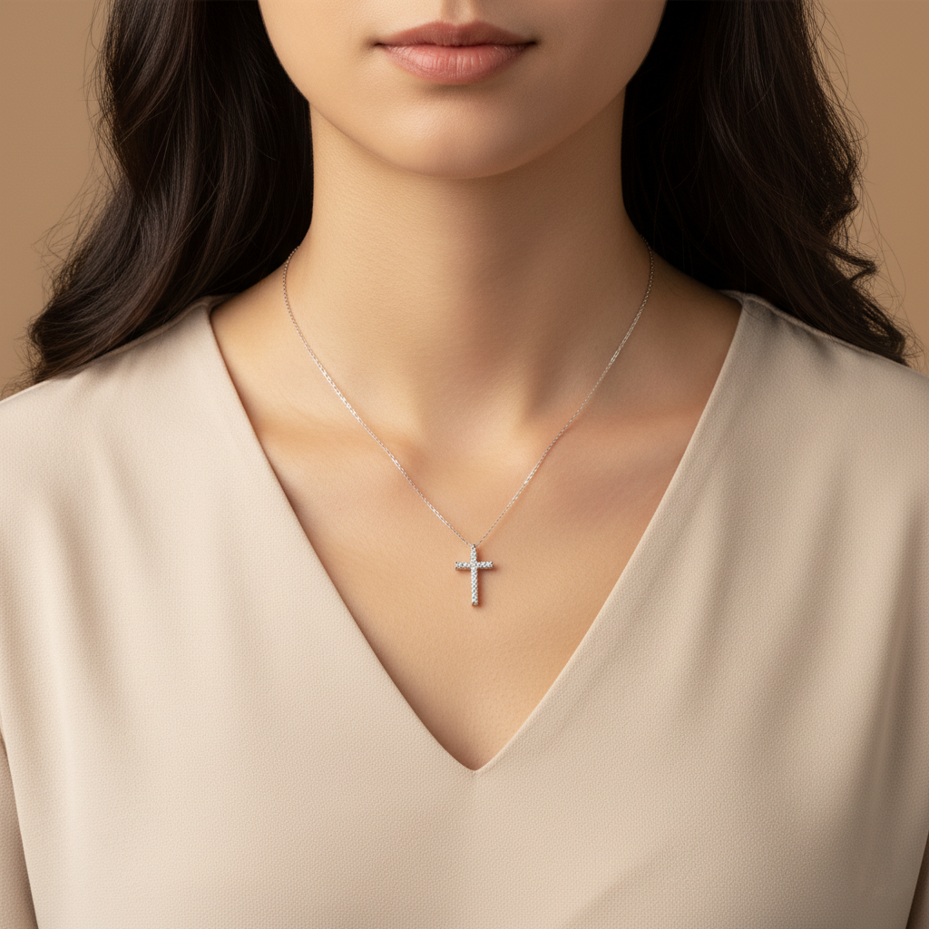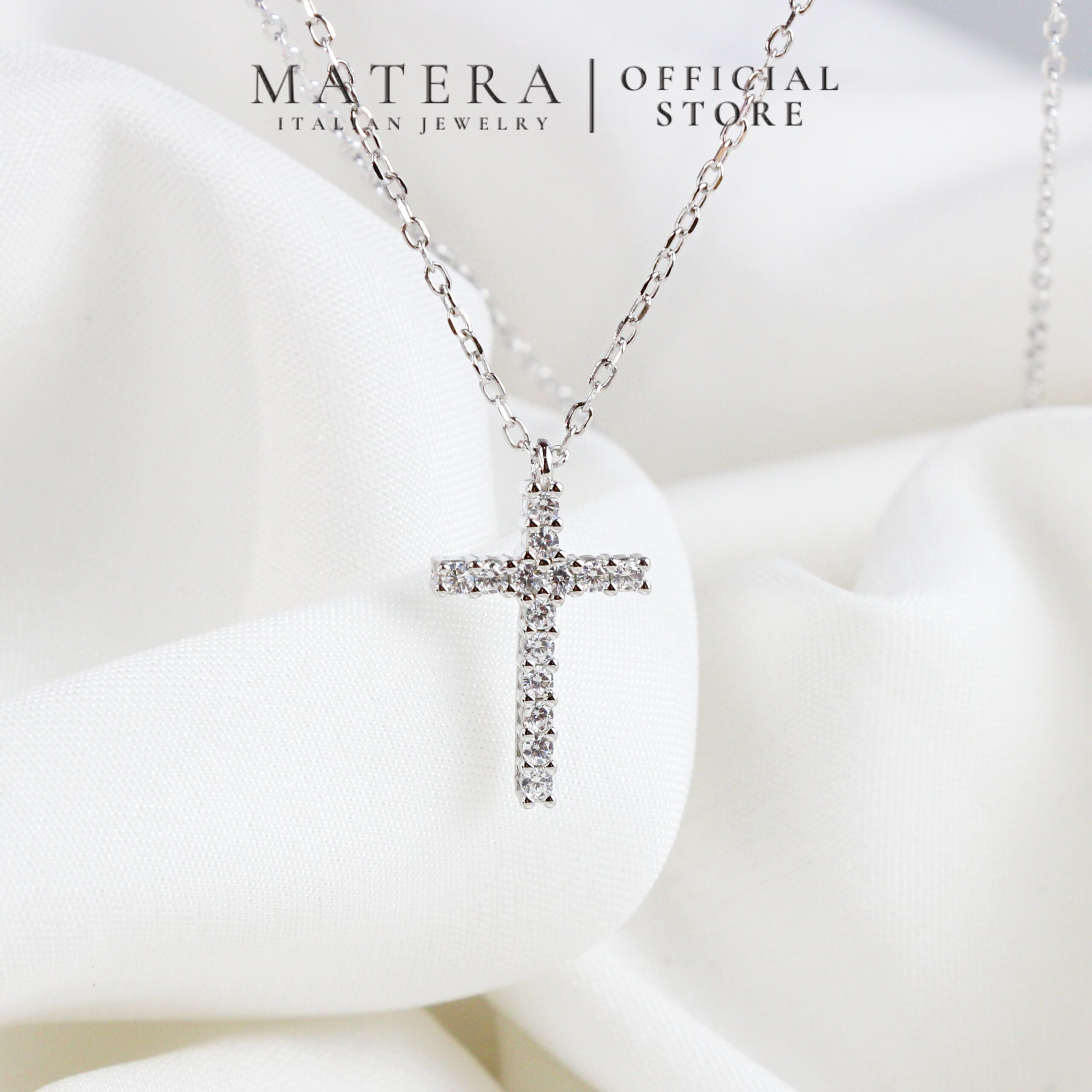 THÔNG TIN SẢN PHẨM DÂY CHUYỀN BẠC MATERA S999 CHỮ THẬP ĐÍNH ĐÁ