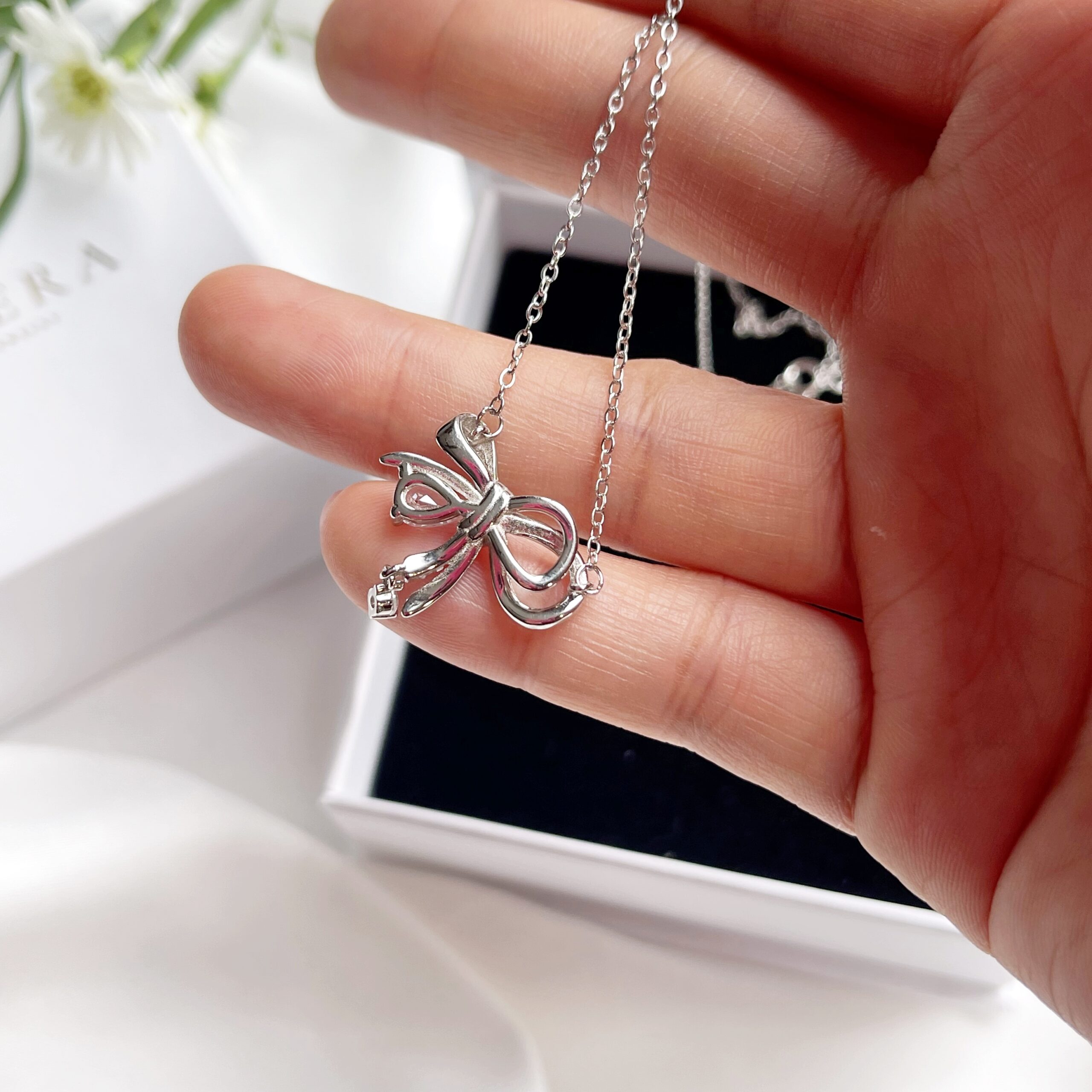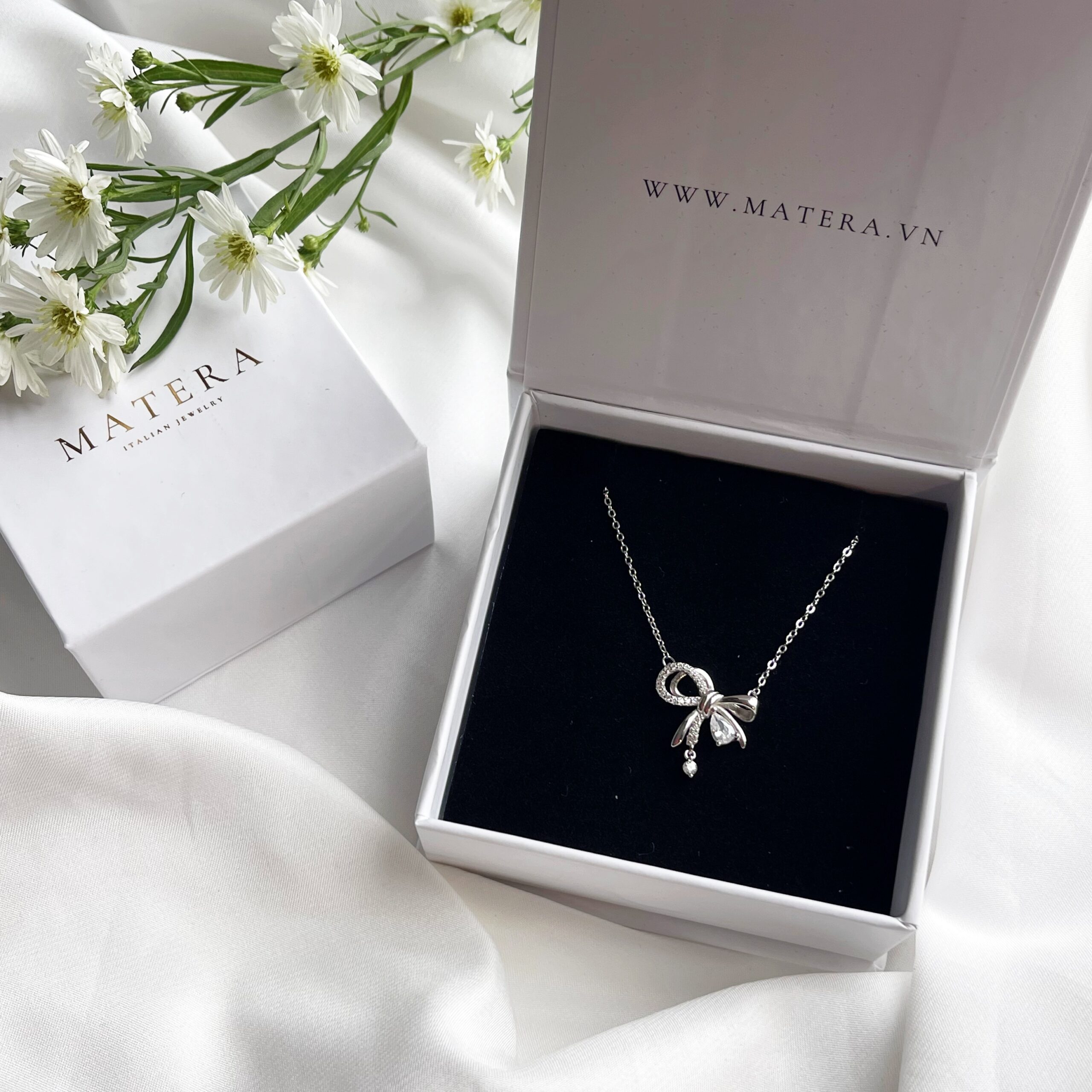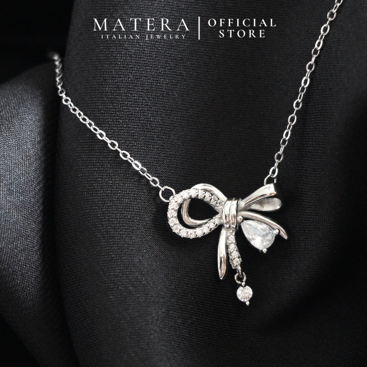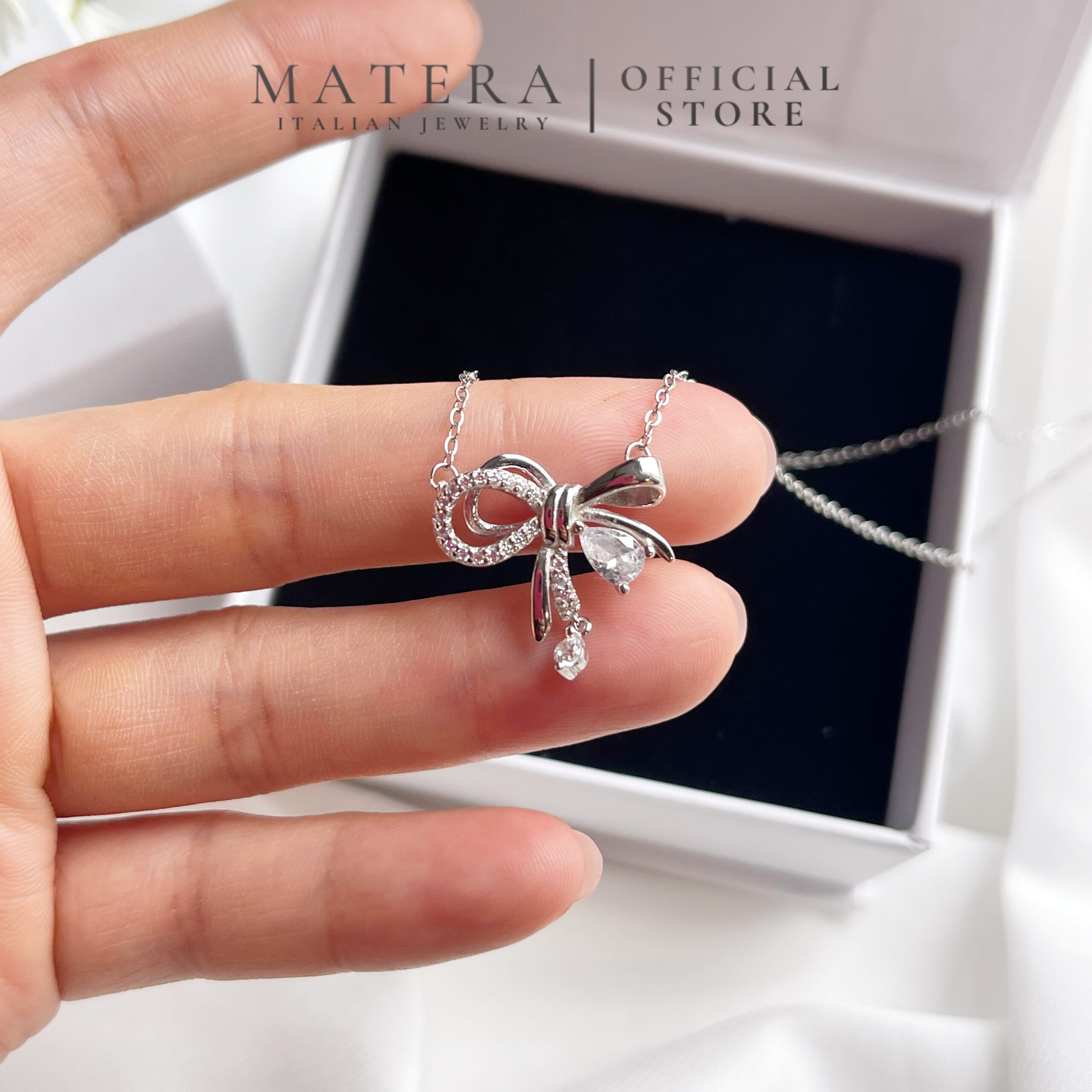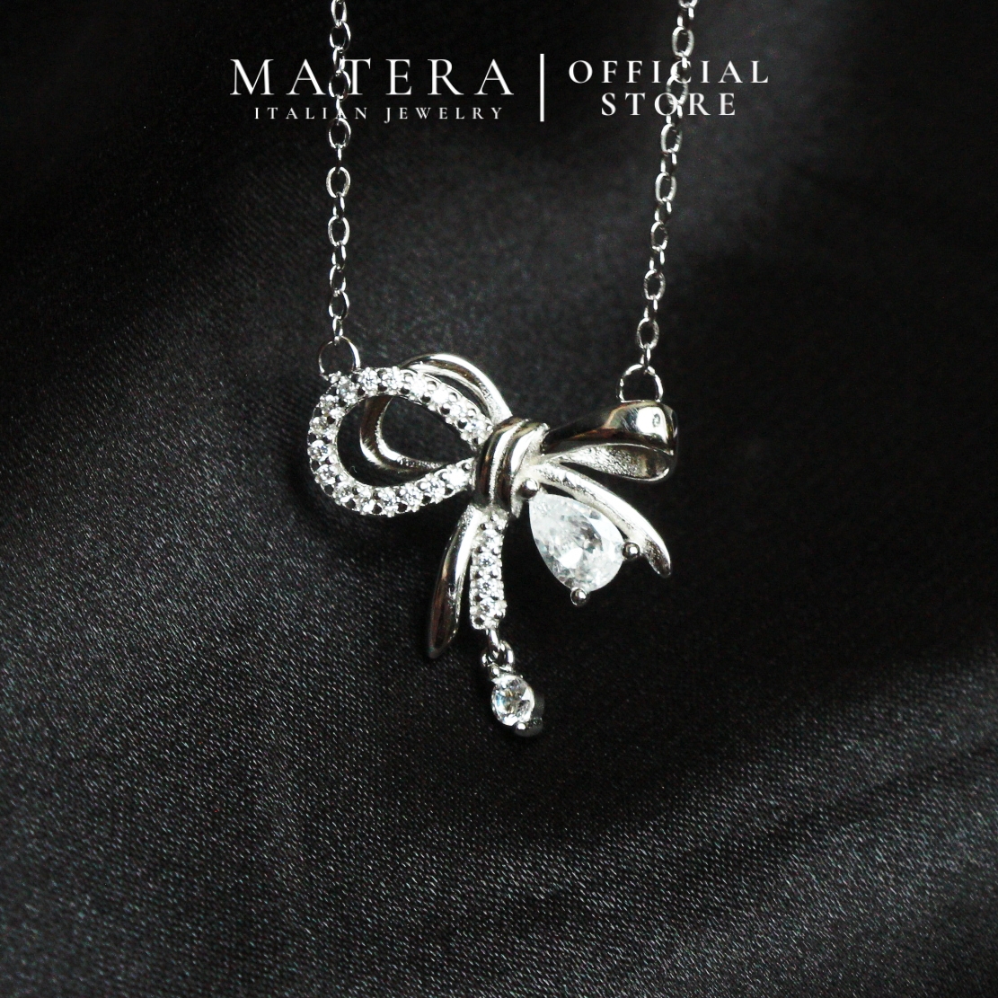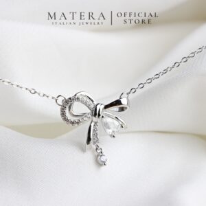 Dây chuyền bạc Matera S925 Ahri Ribbon MDC37 – Thiết kế nơ ngọt ngào, nữ tính. Bạc 925 tinh xảo, đính đá lấp lánh, tôn vinh vẻ đẹp nàng.