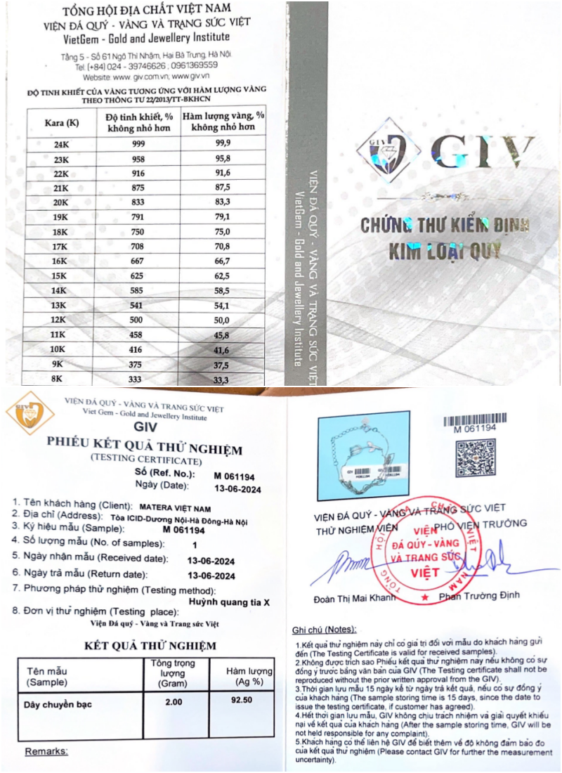 HƯỚNG DẪN SỬ DỤNG VÀ BẢO QUẢN DÂY CHUYỀN BẠC MATERA