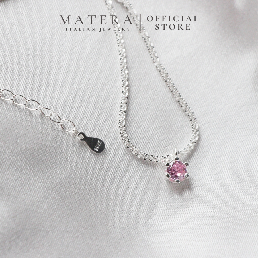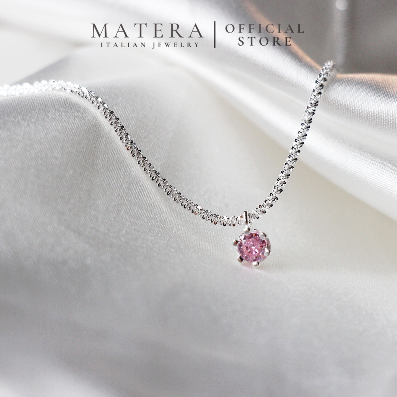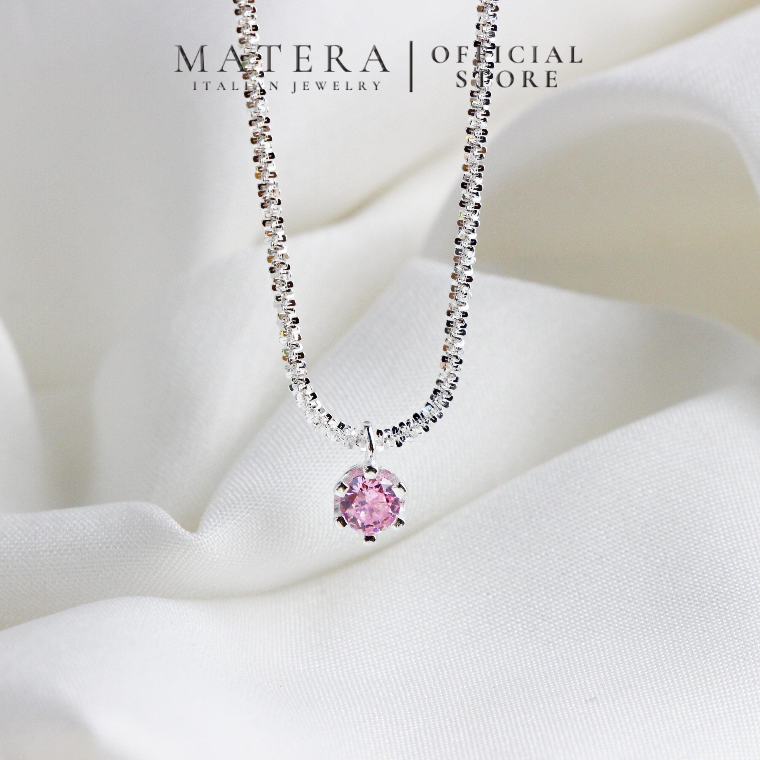 Dây chuyền bạc nữ MATERA S925 dạng lụa xù lấp lánh đính đá Zircon hồng nữ tính quà tặng bạn gái sang trọng MDC40