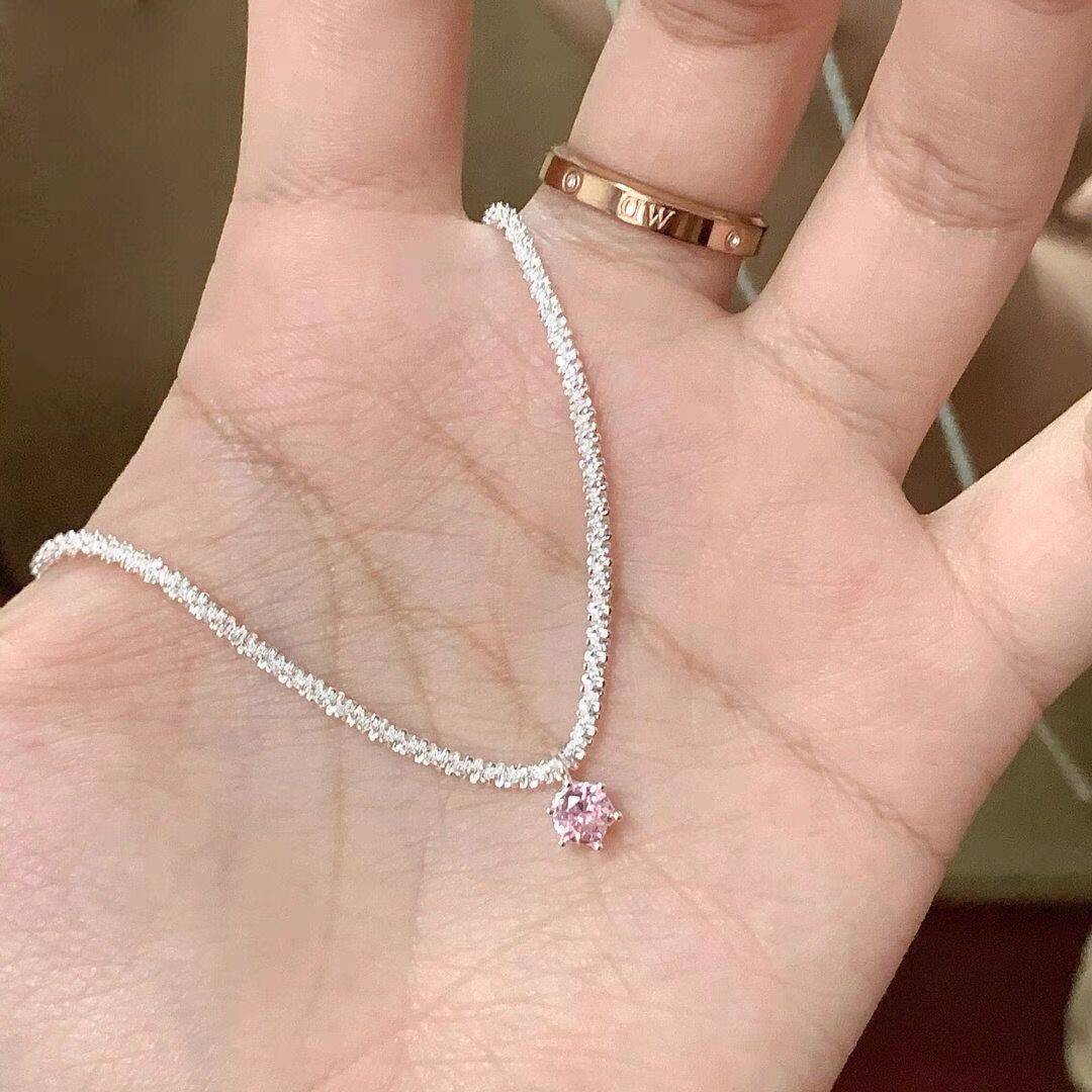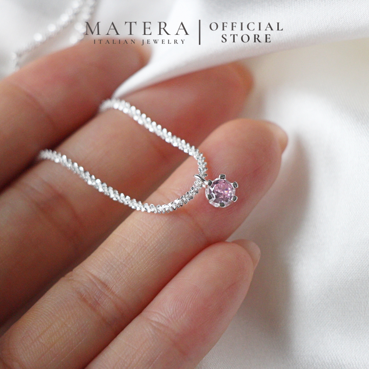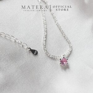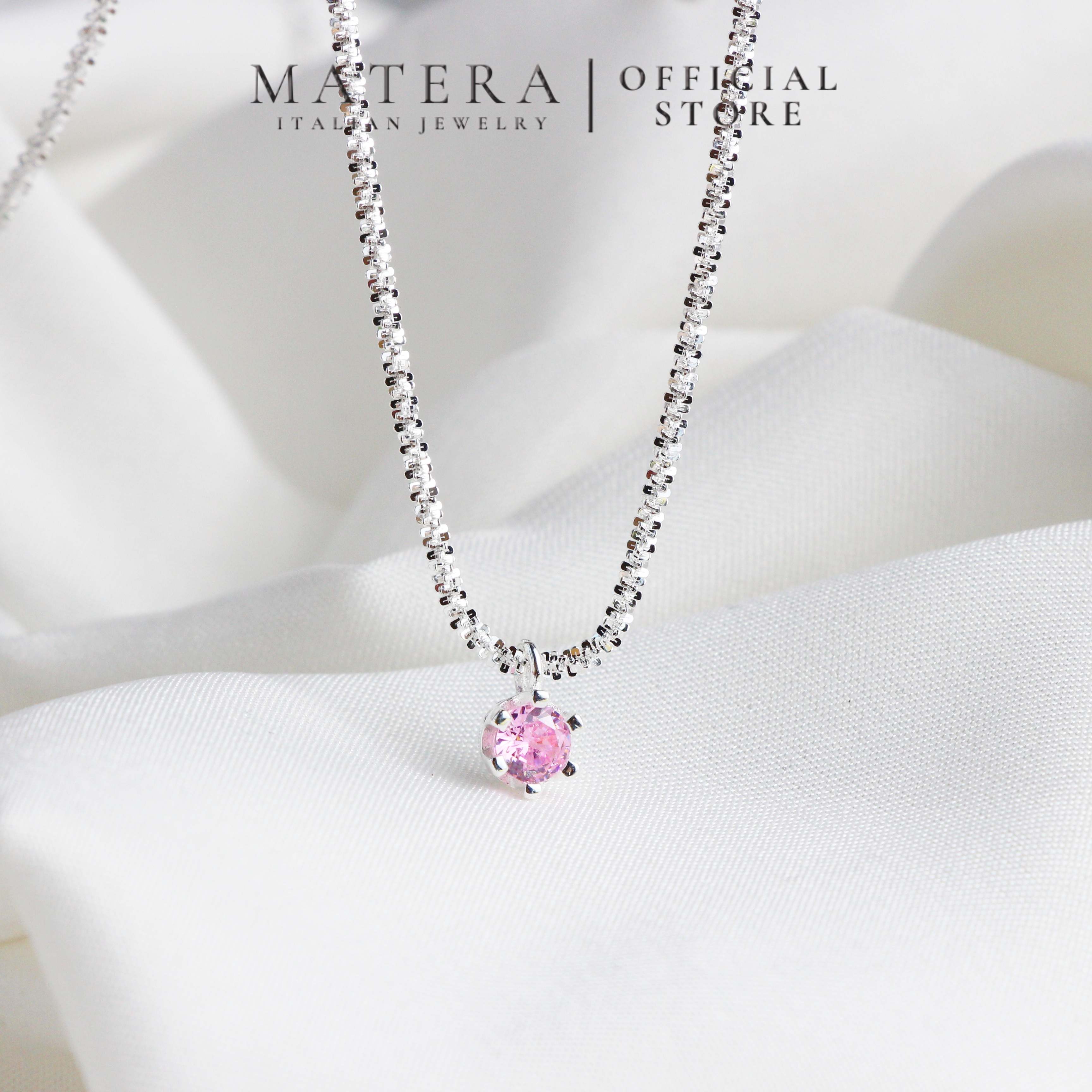 Dây chuyền bạc nữ MATERA S925 dạng lụa xù lấp lánh đính đá Zircon hồng nữ tính quà tặng bạn gái sang trọng MDC40