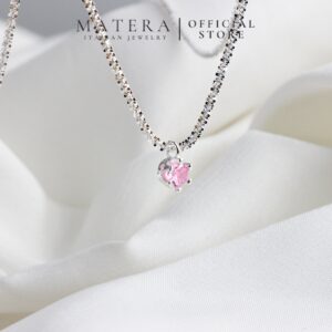 Dây chuyền bạc nữ Matera S925 MDC40 – Dạng lụa xù lấp lánh đính đá Zircon hồng. Thiết kế tinh tế, biểu tượng của tình yêu ngọt ngào, tôn vẻ đẹp nàng.