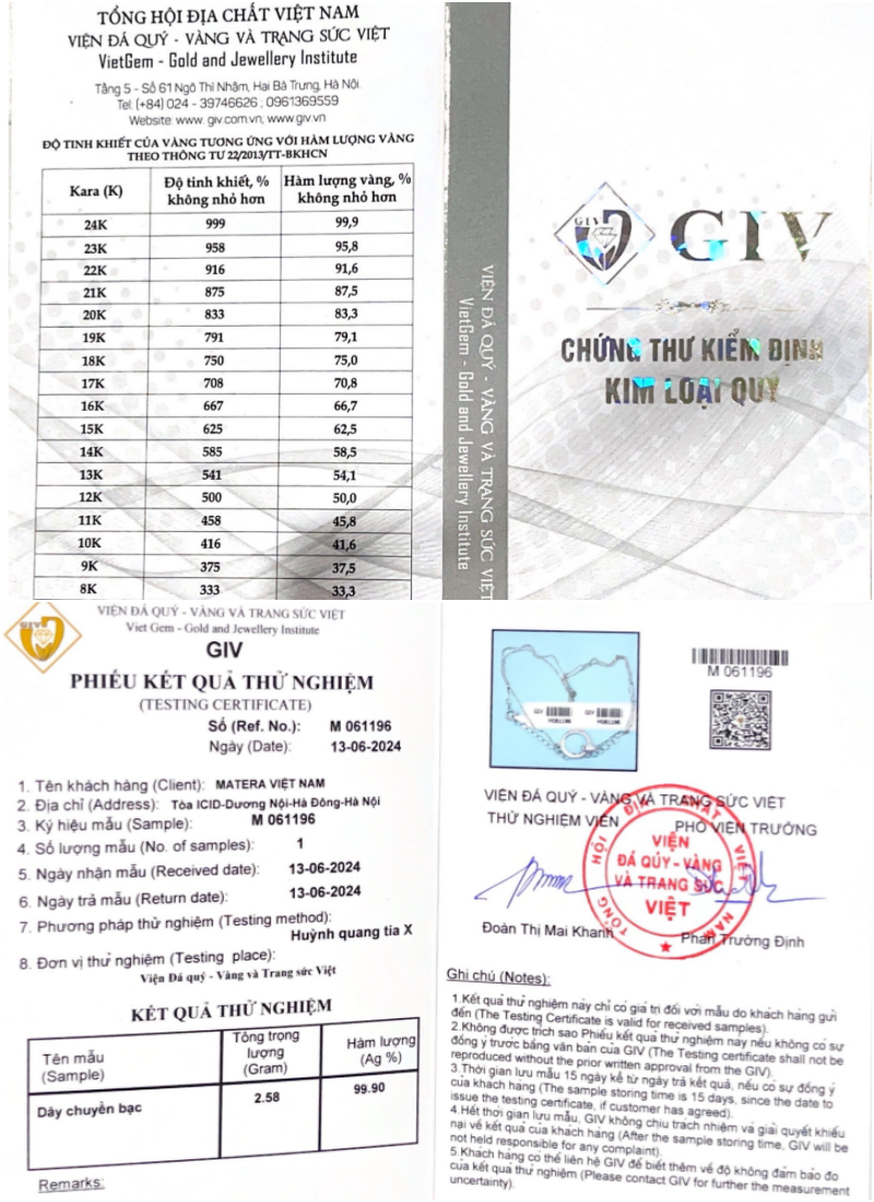 HƯỚNG DẪN SỬ DỤNG VÀ BẢO QUẢN DÂY CHUYỀN BẠC MATERA