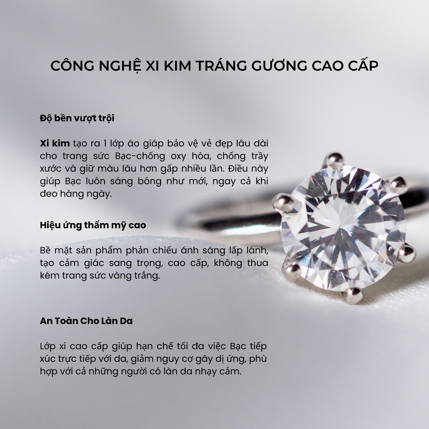 – Khi không đeo, bảo quản trang sức nơi khô ráo, tránh ánh nắng trực tiếp, nơi có nhiệt độ cao hoặc ẩm thấp.