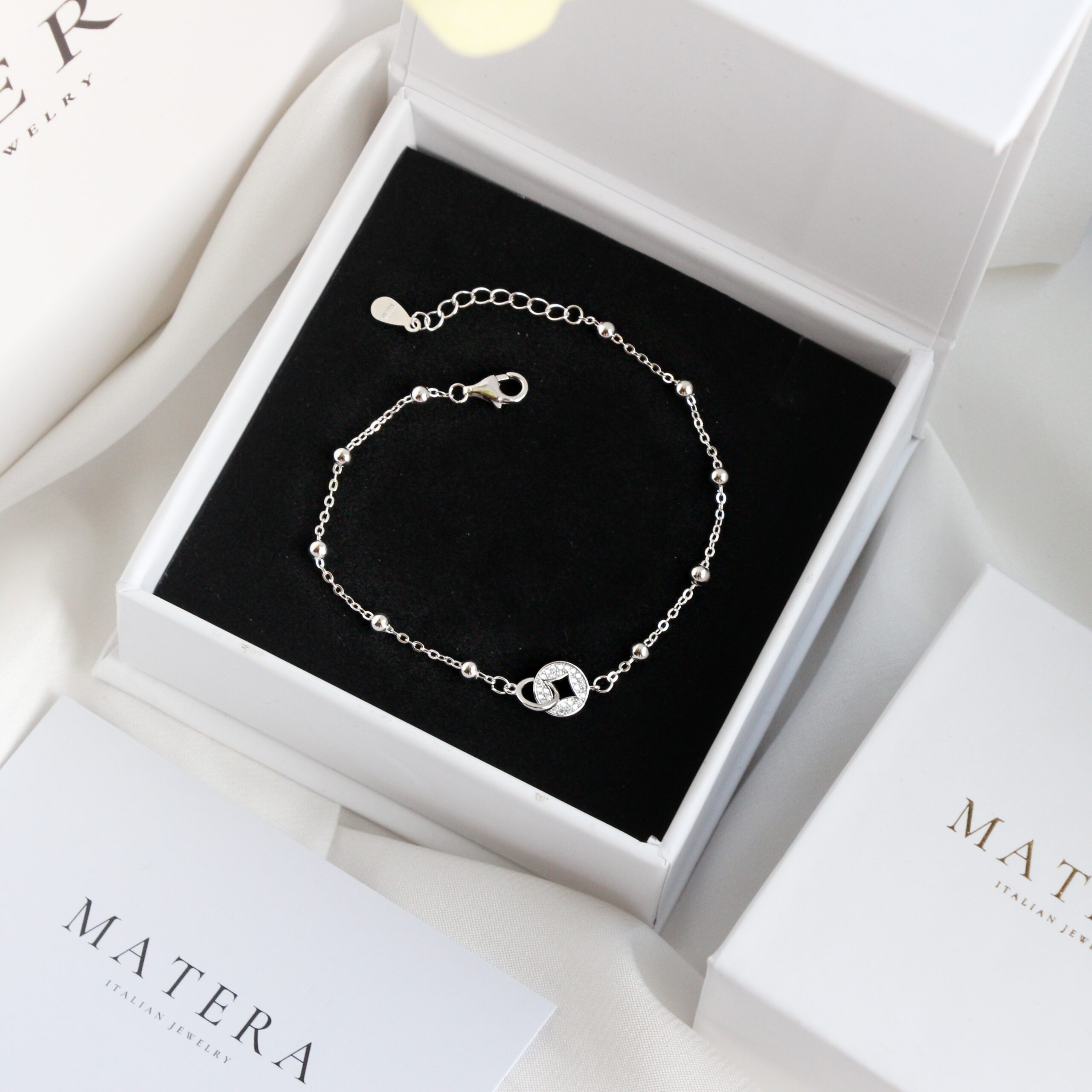 Lắc tay bạc nữ Matera S925 Treasure Ring – Biểu tượng sung túc, phú quý. Thiết kế đồng tiền, hạt bi may mắn, bạc S925 mạ bạch kim bền đẹp, tránh kích ứng.