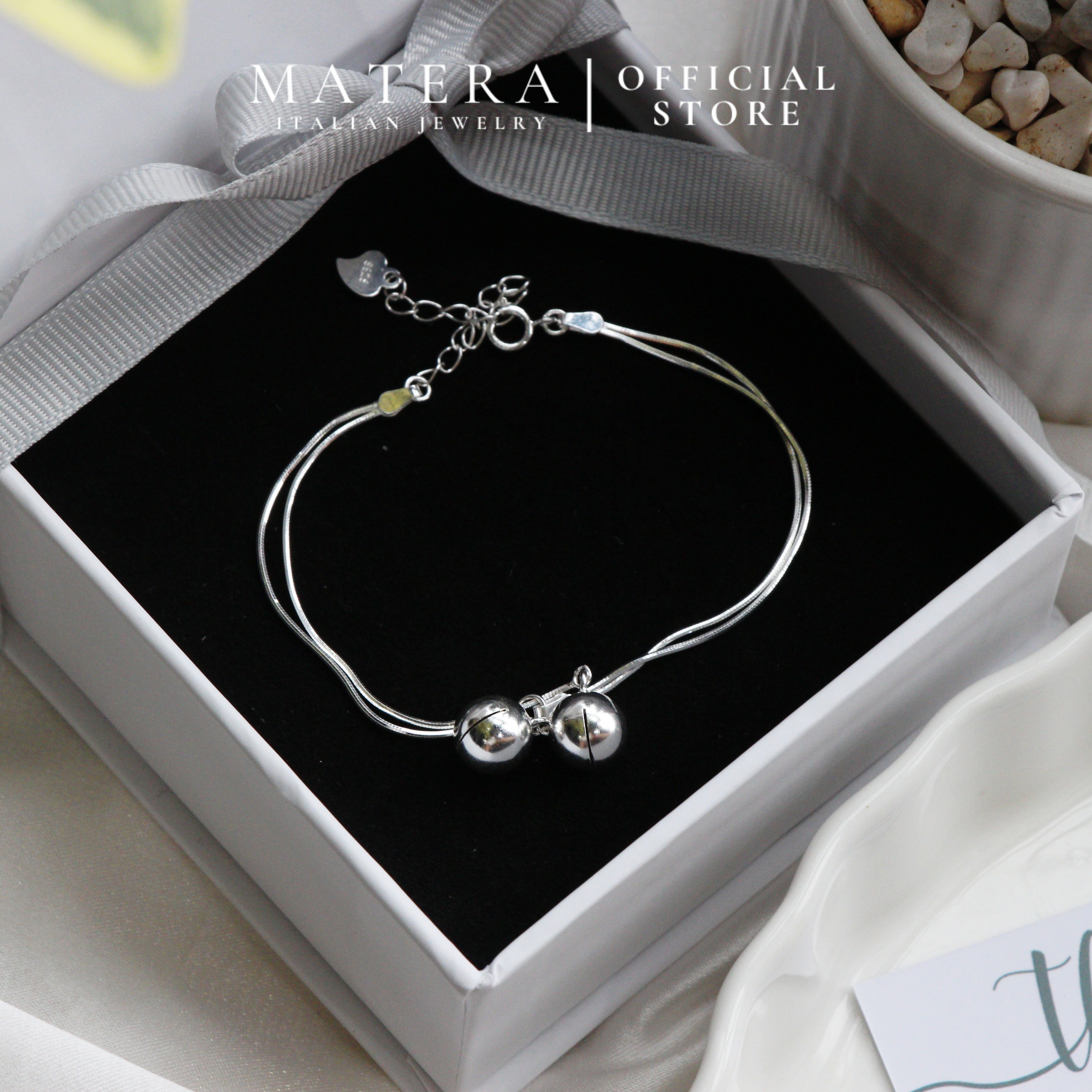 Lắc tay bạc nữ MATERA S925 𝐑𝐢𝐧𝐠𝐢𝐧𝐠-𝐛𝐞𝐥𝐥 𝐁𝐫𝐚𝐜𝐞𝐥𝐞𝐭 sợi lụa đôi gắn lắc chuông basic sang trọng MLT09