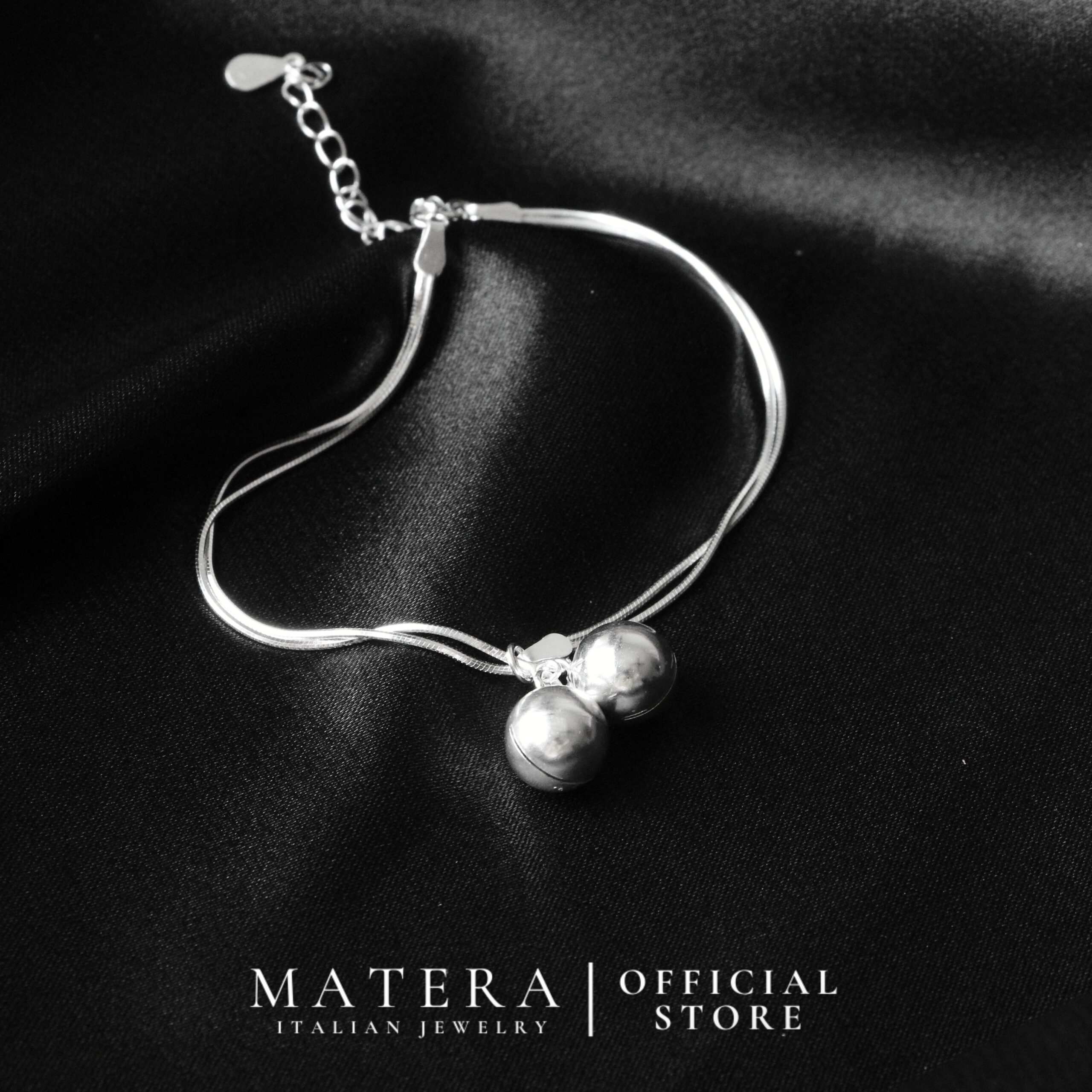 Lắc tay bạc nữ Ringing-bell Bracelet Matera S925 với thiết kế sợi dây đôi và chuông nhỏ. Bạc S925 cao cấp, không han gỉ, an toàn, tôn lên vẻ đẹp thanh lịch của nàng.