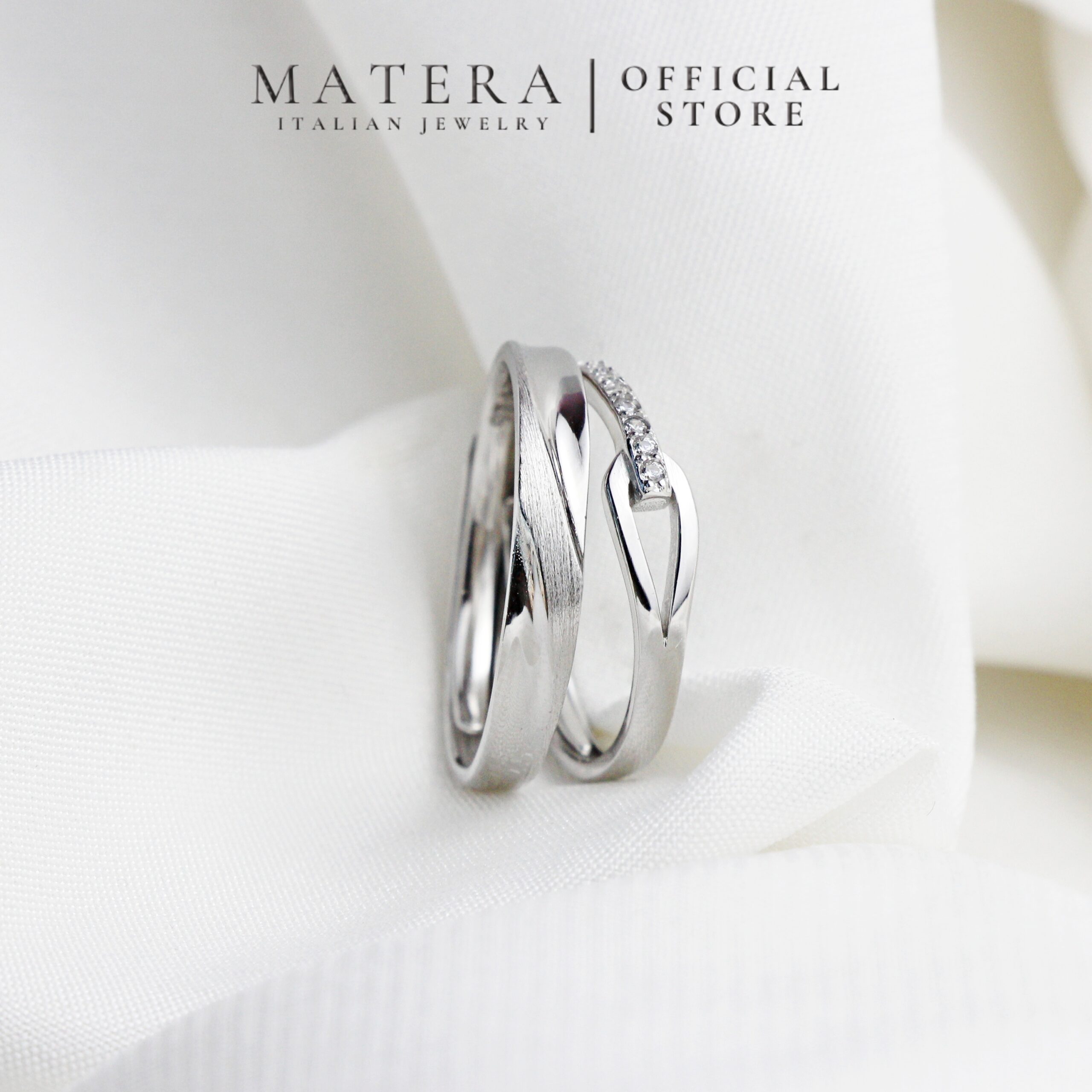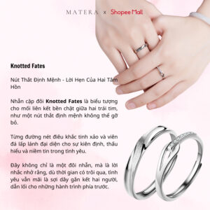 Nhẫn cặp đôi Knotted Fates Matera S925 – Nút Thắt Định Mệnh cho tình yêu vĩnh cửu. Bạc S925 mạ bạch kim, điêu khắc cát tinh xảo, đính đá lấp lánh, có thể tùy chỉnh kích thước.